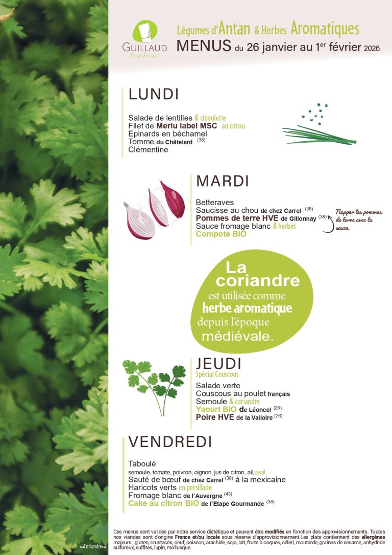 Menus du restaurant scolaire du 26 janvier au 1er février