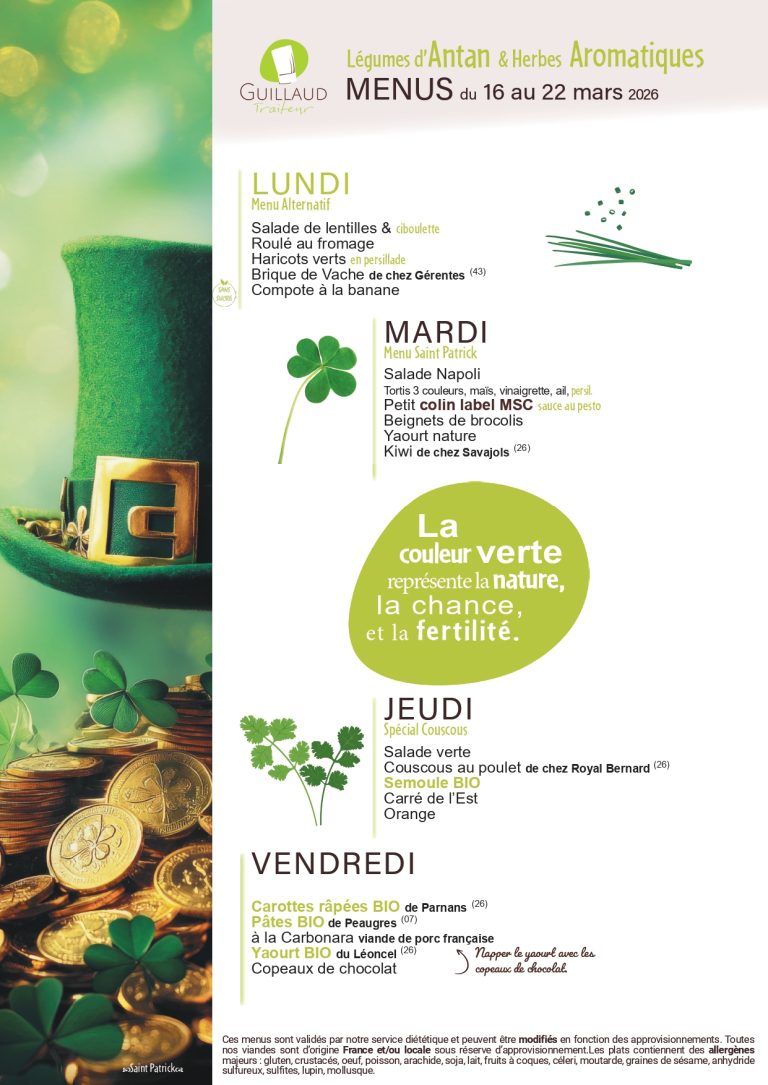 Menus du restaurant scolaire du 16 au 22 mars