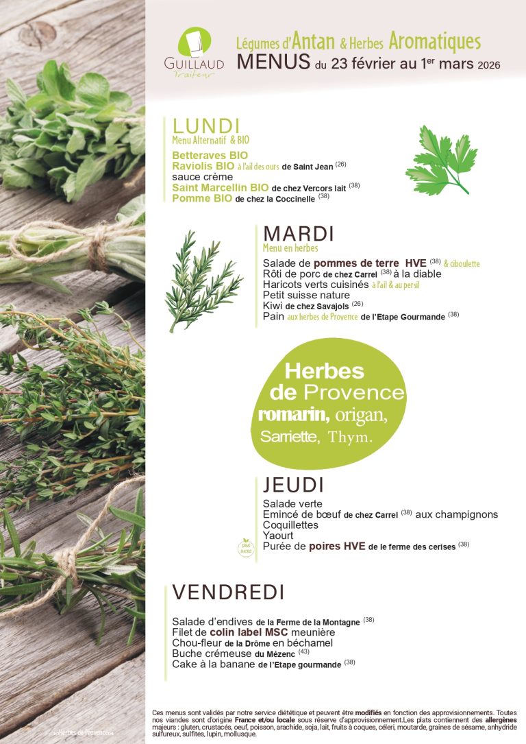 Menus du restaurant scolaire du 23 février au 1er mars