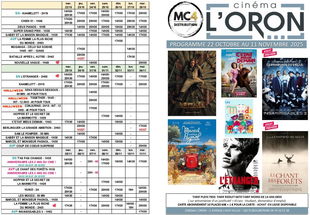 Programme du cinéma l’ Oron du 22 octobre au 11 novembre