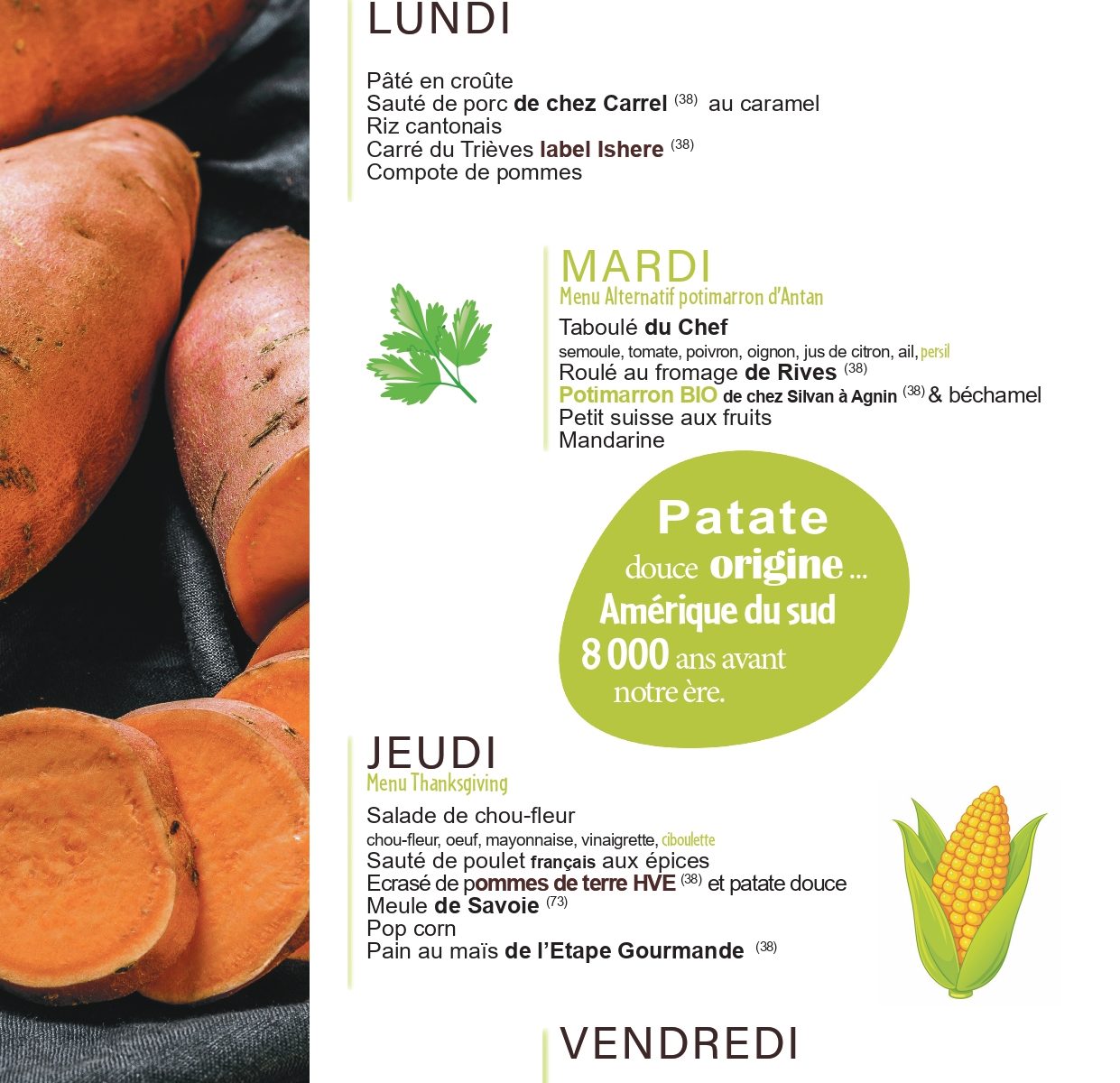 Menus du restaurant scolaire du 24 au 30 novembre 2025