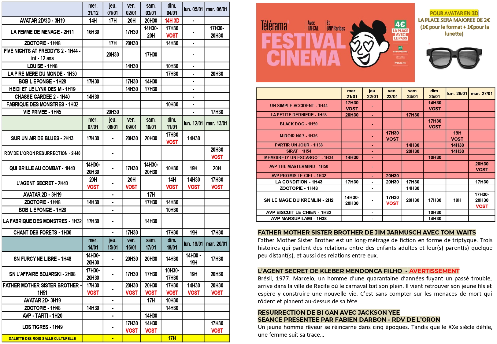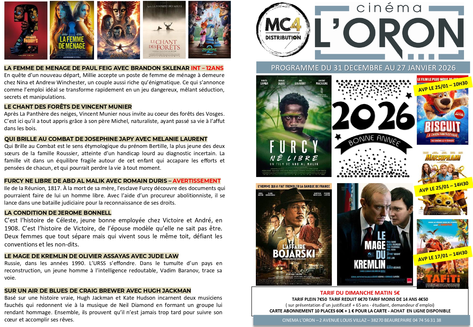 Programme du cinéma l’ Oron du 31 décembre au 27 janvier 2026