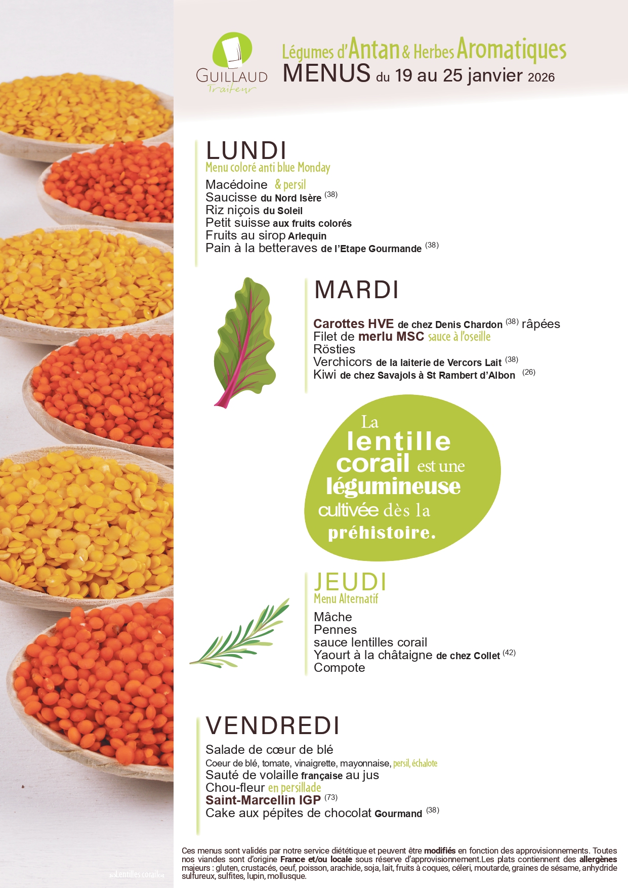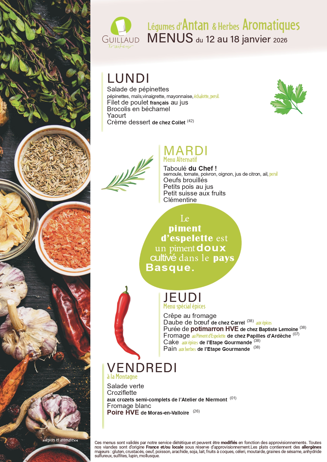Voici les menus du restaurant scolaire jusqu’aux vacances de février