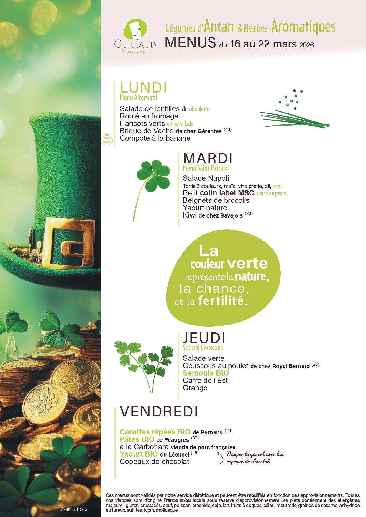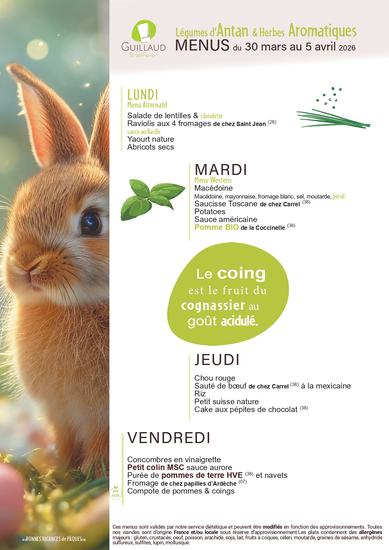 Voici les menus du restaurant scolaire jusqu’aux vacances de Pâques